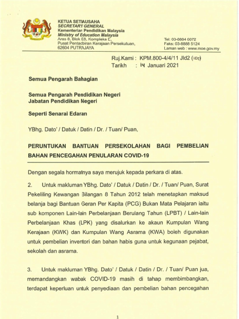 Surat Siaran Peruntukan Bantuan Bagi Pencegahan COVID-19 (Pindaan